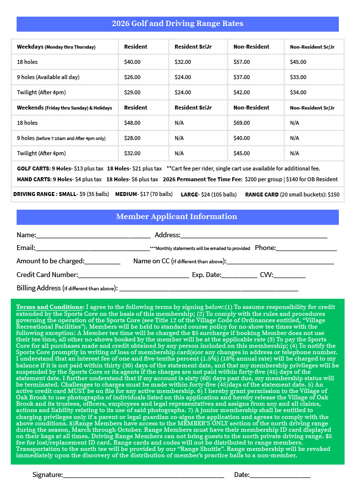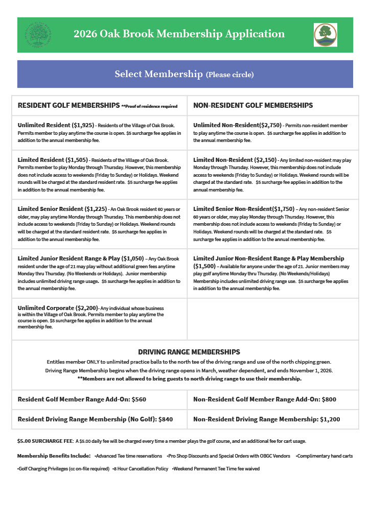 All Oak Brook Residents, Seniors, and Juniors MUST download the Membership Application below and submit to Oak Brook Golf Shop or email sfleck@oak-brook.org.